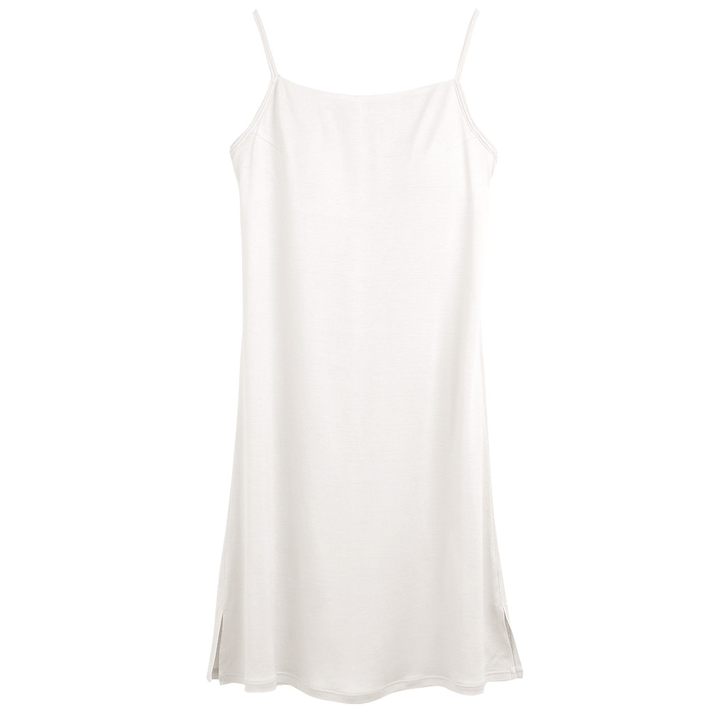 裾に向かってゆるやかに広がるAラインシルエット。ボディに軽く沿いながら楽に着られる絶妙なカットラインと余計な装飾のないシンプルなデザインでどんなシーンにも使いやすいインナー ワンピースです。