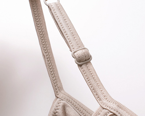 アンダーの平ゴムは前側にのみ付いているので、背中までぐるっと一周付いているものと比べると、とっても楽ちん。カップ布も前側のみとなっています。締め付け感がなくてリラックスできる着心地に。
