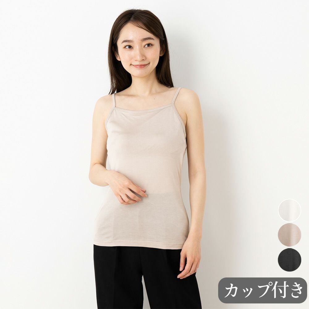 シルク100% カップ付き キャミソール 日本製 しっかりタイプ 【ふわ肌シルク】