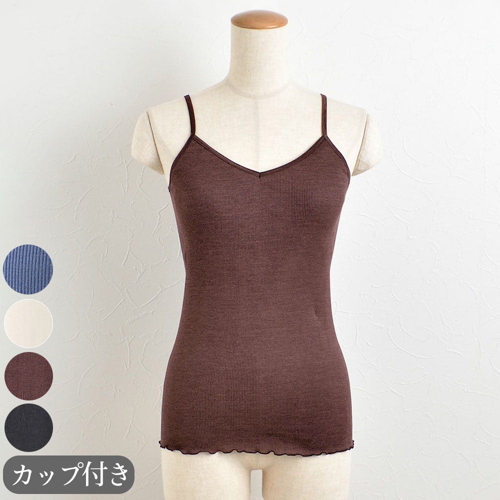 シルク100% テレコ 金具がないカップ付きキャミソール 病院用 日本製 ウォッシャブル加工