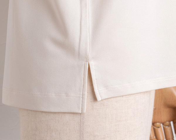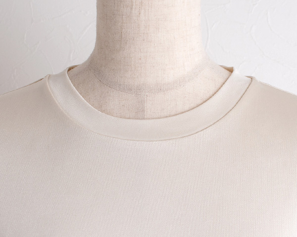 140gの厚みで透け感が少なく、また体のラインを拾いすぎず且つスッキリ見えするようこだわった絶妙のシルエットですから、オフィスやお出かけ、おうち時間など、いろんなシーンで着回して頂けます。