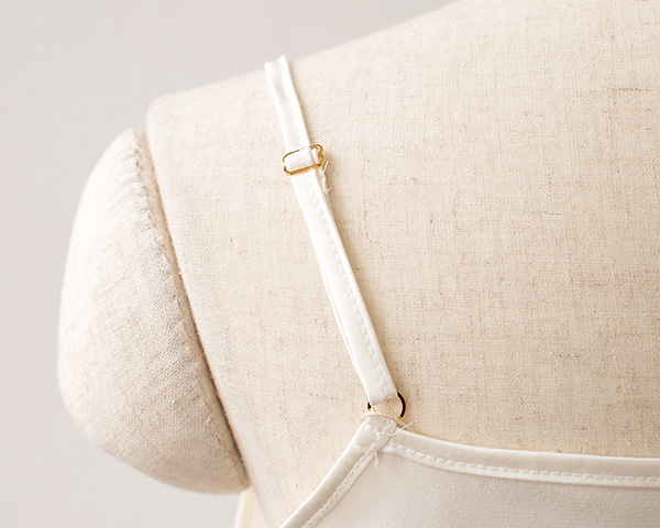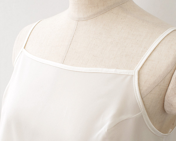 身生地:シルク91%、ポリウレタン9%(シルククレープデシン) 肩紐:シルク95%、ポリウレタン5%(シルクサテン)