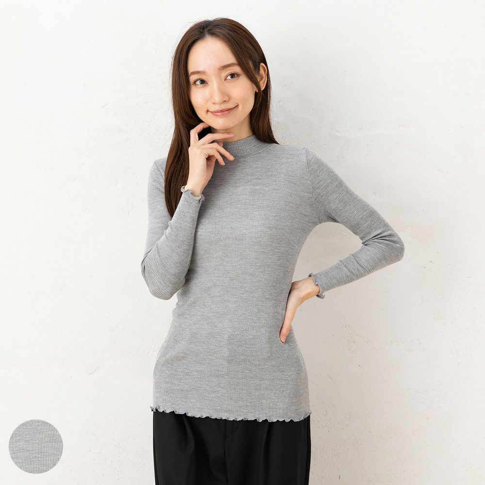 横に良く伸びるリブ編み仕立てのシルク インナーはボディにぴったりフィットしてくれます。 かさばりにくい薄手のインナーですから、重ね着してももたつきません。 ハイネックデザインは首回りもカバーしてくれるのでチクチクニットのインナーにもおすすめ。 両脇に縫い目のないサイドシームレスだから、ゴロつきがなく快適な着心地。 おしゃれな杢調カラーでチラ見えしても気になりません。
