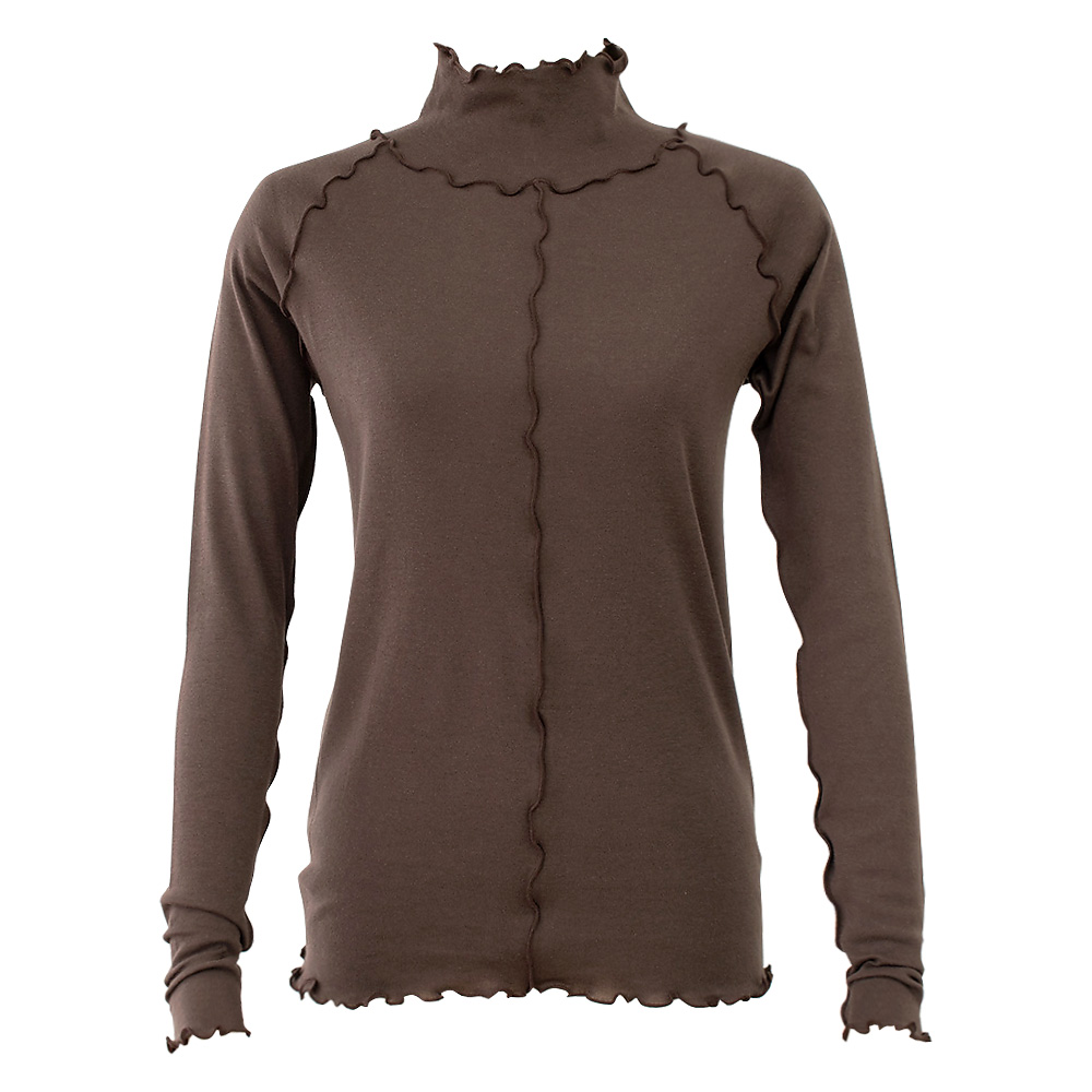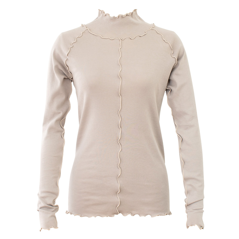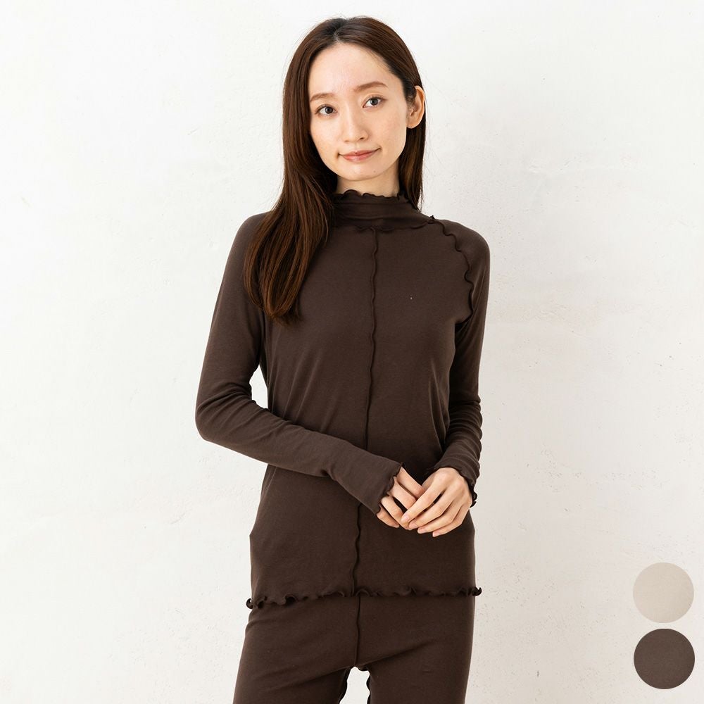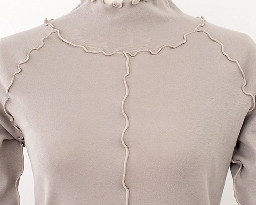 ほどよいフィット感のある長袖 インナー。素肌に優しくなじみます。各所縫い目を表側に返して、肌側はするんとなめらか、お肌に優しい着心地です。ハイネック部分はゆとりあるお作りにして、締め付け感なく首回りをカバー。ちくちくニットの刺激から優しく守ってくれます。