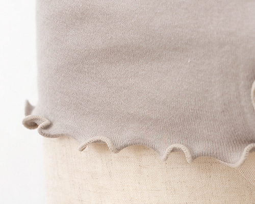 オーガニックコットンは、3年以上農薬や化学肥料を使わない農地で 栽培された綿のことをいいます。 手間をかけながら、昔ながらの自然な栽培方法で作られた環境にも人にも優しい綿繊維は、 空気をたくさん含み、ふっくら心地よい感触で素肌を包みます。 そのため、敏感肌さんにもぜひおすすめしたい素材です。 薄くて軽いタッチの素材はまるで赤ちゃんの肌着のような柔らかさ。お肌にそっと触れるような優しい着心地です。きめの細やかなフライス編みのため、伸びが良く、お肌になじむなめらかな肌触りで、ずっと触れていたくなる気持ちよさがあります。 ※ぽつぽつと白や黒の点状に見えるものは綿花の茎や葉のかすです。 オーガニックコットンならではの風合いとなり、ご着用に問題はございませんのでご安心下さい。