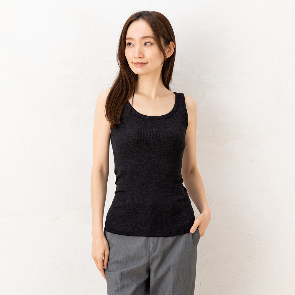 シルク100% テレコ タンクトップ 日本製 ウォッシャブル加工