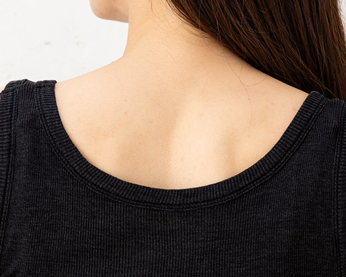 身生地はとろみ感とさらり感が合わさったシルク100%テレコ素材。サイドシームレス仕立てで脇がゴロつかず、体に優しくフィット。なめらかですっきりとした着心地です。重ね着してももたつかないシンプルなデザインとベーシックなカラー展開で着回し力も抜群です。