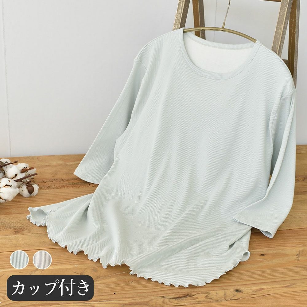 ブラジャー要らずの楽ちんカップ付きで、締め付けから解放~。ゆとりのあるリラックスした着心地で、ルームウェアやパジャマとしても。