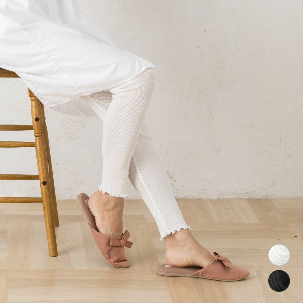 ●柔らかく伸びて、素肌になじむ、レギンス ●天然素材100%。コットンシルクのふんわりと軽やかな履き心地 ●ベーシックなカラーとシンプルなデザインで着回し力のある一枚