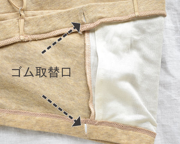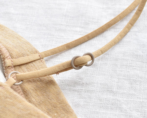 身生地:オーガニックコットン95%、ポリウレタン5% 別布:シルク100% ストラップ:ナイロン、ポリウレタン
