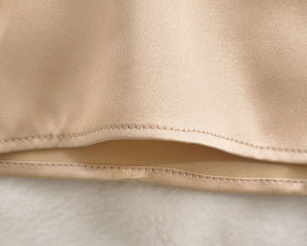 しなやかですべすべなシルクサテンは ずっと身に着けていたくなる心地よさ。お肌の弱い方にも安心してお召し頂けます。シルクの繊維にはミクロ単位の隙間がおおく3分の1も空気層だから、保湿に優れ、軽いのも魅力。夏は涼しく、冬は暖かくお過ごしいただけます。