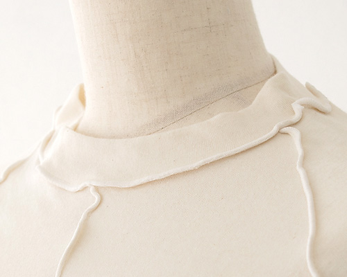 • 縫い目は襟ぐり・脇繰り・身頃中央・袖下にあり全て表側に返してメロー仕上げにしました