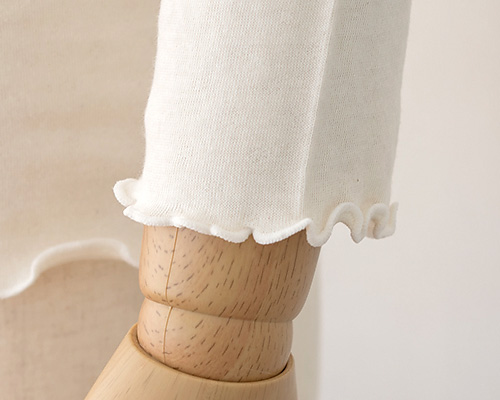 肌側はシルク100%。吸放湿性に優れた絹だから、寝汗を吸収してくれ、不快感を軽減。 外側のコットン生地との間に空気をため込むので、ふんわりソフトな生地感で、気持ちのよい肌触り。 保温性もあるので、薄手なのにあったか。肌寒い季節のインナーとして一枚重ねるだけで着心地がグレードアップします。