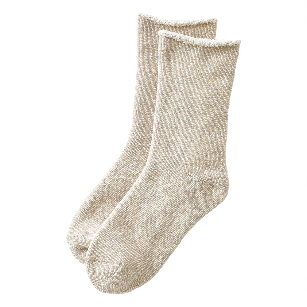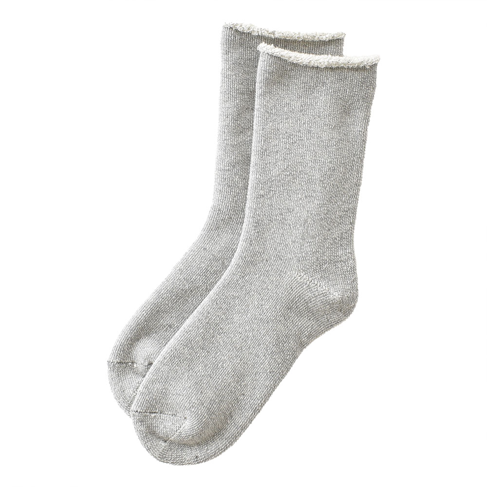 シンプルなデザインながら、杢調の表情が豊かなこのソックスは、普段使いにぴったりのアイテム。自分用にはもちろん、大切な方へのちょっとしたギフトにもおすすめです。少し肉厚な靴下なので、外履きとして履く場合はゆったりしたスニーカーやフラットシューズと合わせて。