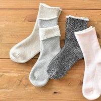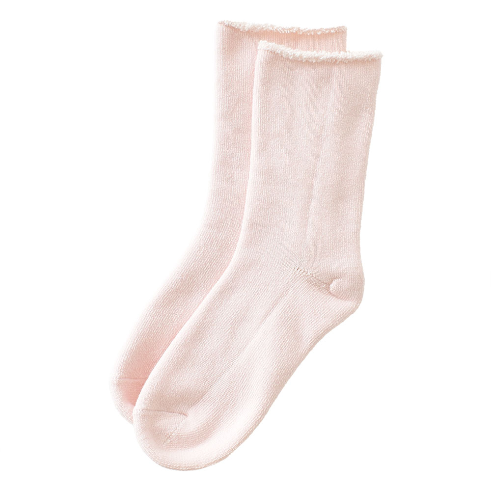 足を入れた瞬間からふかふかとまるでタオルに包まれているかのような心地よさが続くパイルソックス。 パイル糸はコットン100%糸を使用しており敏感肌の方にも安心してお使いいただけます。また、締め付けがなく柔らかなフィット感で、ルームソックスやお休み靴下としてもおすすめです。