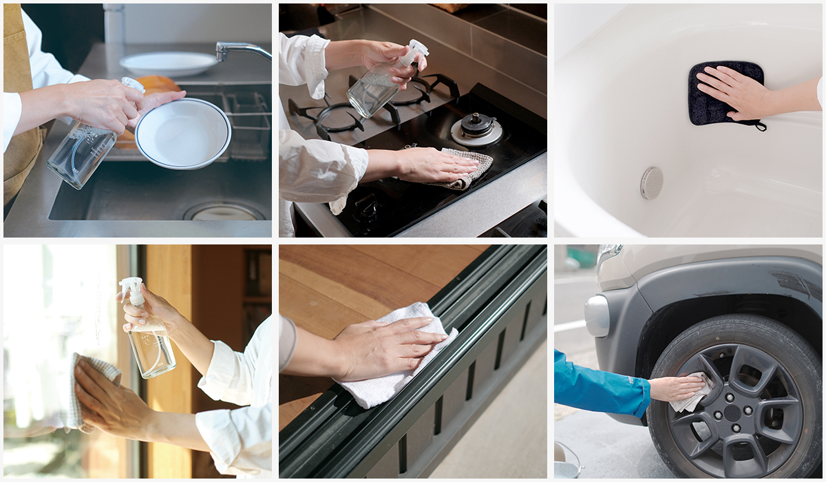 「海へ...Fukii」を水で希釈することで、キッチンやお風呂、床、窓のお掃除など、家中のおそうじに使えます。 かるい汚れの場合、海へ1:水20の比率で希釈。 表面の油が少なく薄い汚れのおそうじ用 ●拭き掃除(窓・フローリング・家具・壁)●食器洗い●ペットの汚れ落としなど がんこな汚れの場合、海へ1:水4の比率で希釈。 油汚れなどの落ちにくい汚れのおそうじ用 ●換気扇●ガスコンロ●グリル(焼き網) ●お風呂●トイレ●洗車など ※防腐剤不使用のため、水で希釈した洗剤は長時間置くと変質しますので、早めにご使用ください。