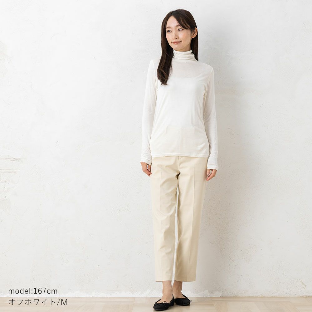 柔らかくふんわりとしたシルク100%生地で、やさしい肌触りに癒やされます。薄手でお肌に馴染みやすく、まるで第二の皮膚のように自然な着心地。インナーとして使いやすい厚みです。落ち着いた光沢感。【ブラック】は特殊なウォッシャブル加工を施し、色落ちや毛羽立ちを抑え、洗濯機で洗えます。