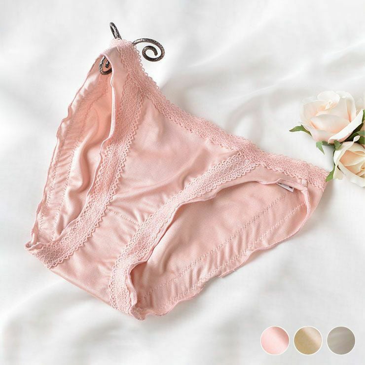 素肌が喜ぶしっとりすべすべの肌触り、極上リラックスな着用感。可愛く仕上げたデザインで、癒しの大人可愛いシルクショーツ。肌触りが柔らかく、着けていることを忘れるほどのストレスフリーな履き心地です。