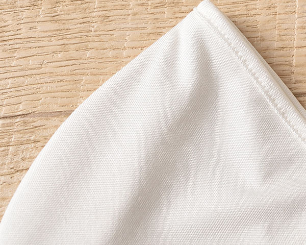 繭から最初に取り出される生糸を使用して編まれた高品質なシルク100%正絹生地。 スムース編みは表面と裏面が同じ編み方のニット生地で、柔らかくとてもなめらかで気持ちの良い肌触りです。シルクジャージーに比べてしなやかで光沢感があります。100g・110gは比較的薄手で、インナーとして使いやすい厚みです。 摩擦に弱く毛玉ができやすいので、お取扱いには注意が必要です。 ※こちらのマスクは正絹シルク100%スムース生地を2重にしてお作りしています