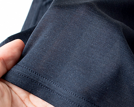 艶っぽいシルクとは異なり、アウターにも使われているカジュアルな質感で、控えめな光沢感が上品。シルク生地のなかでも比較的毛玉になりにくい素材です。