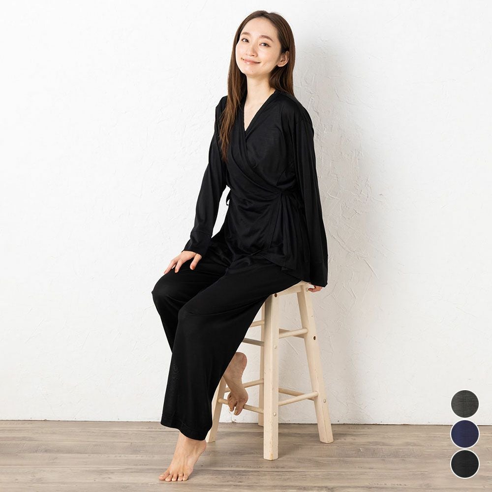 シルク100%ジャージー パジャマ 上下セット カシュクールトップスとパンツ 日本製