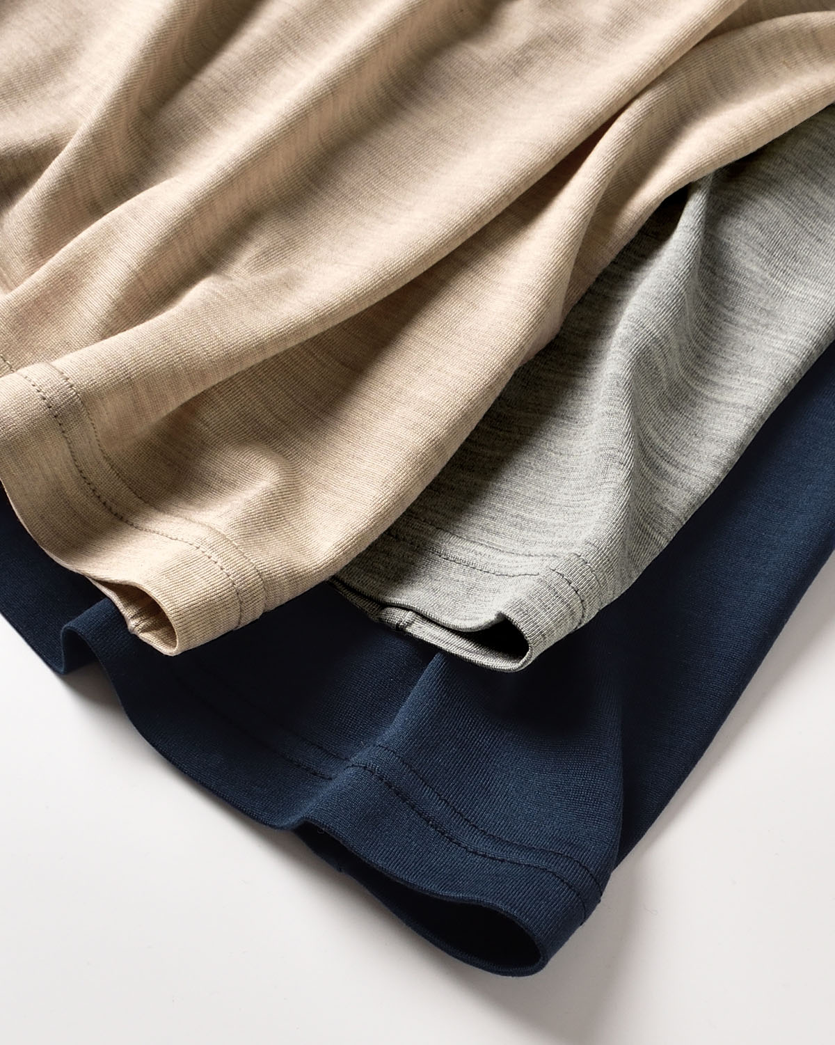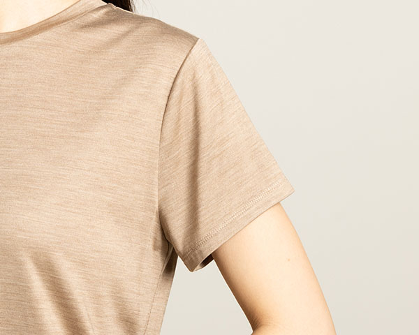 軽やかな着心地と、お肌をすべるしっとりとした肌触りが心地のいい生地。 シルクは吸放湿性に優れているので、 汗をかいてもすぐにサラサラです。
