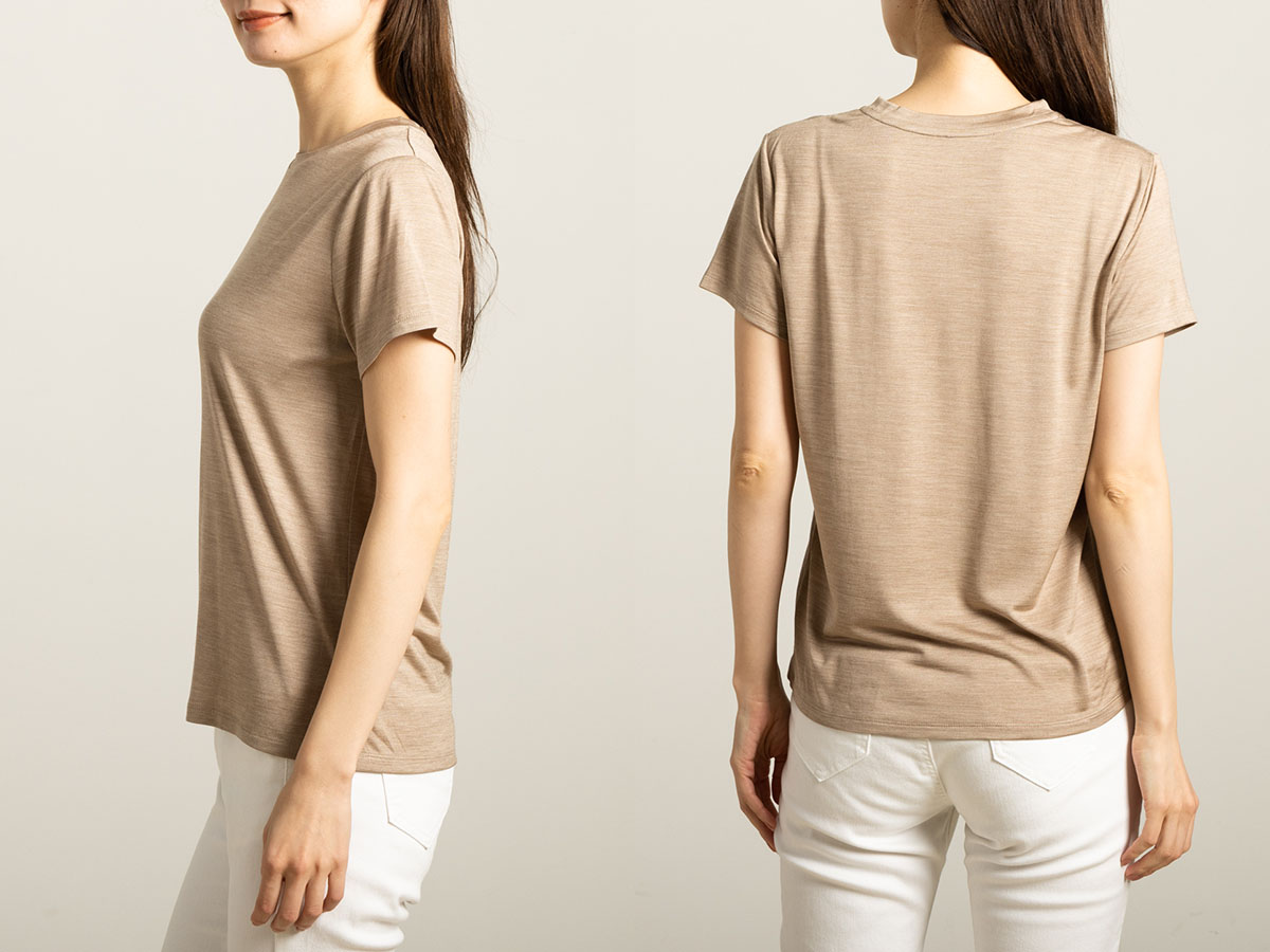 首元は開きを少なくしてスマートで上品な印象に。 シンプル&ベーシックな形で インナーからアウターまで、着回しやすいトップスです。