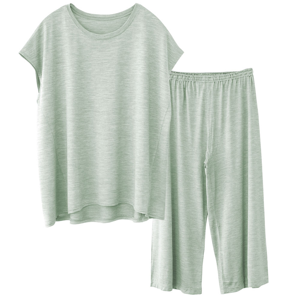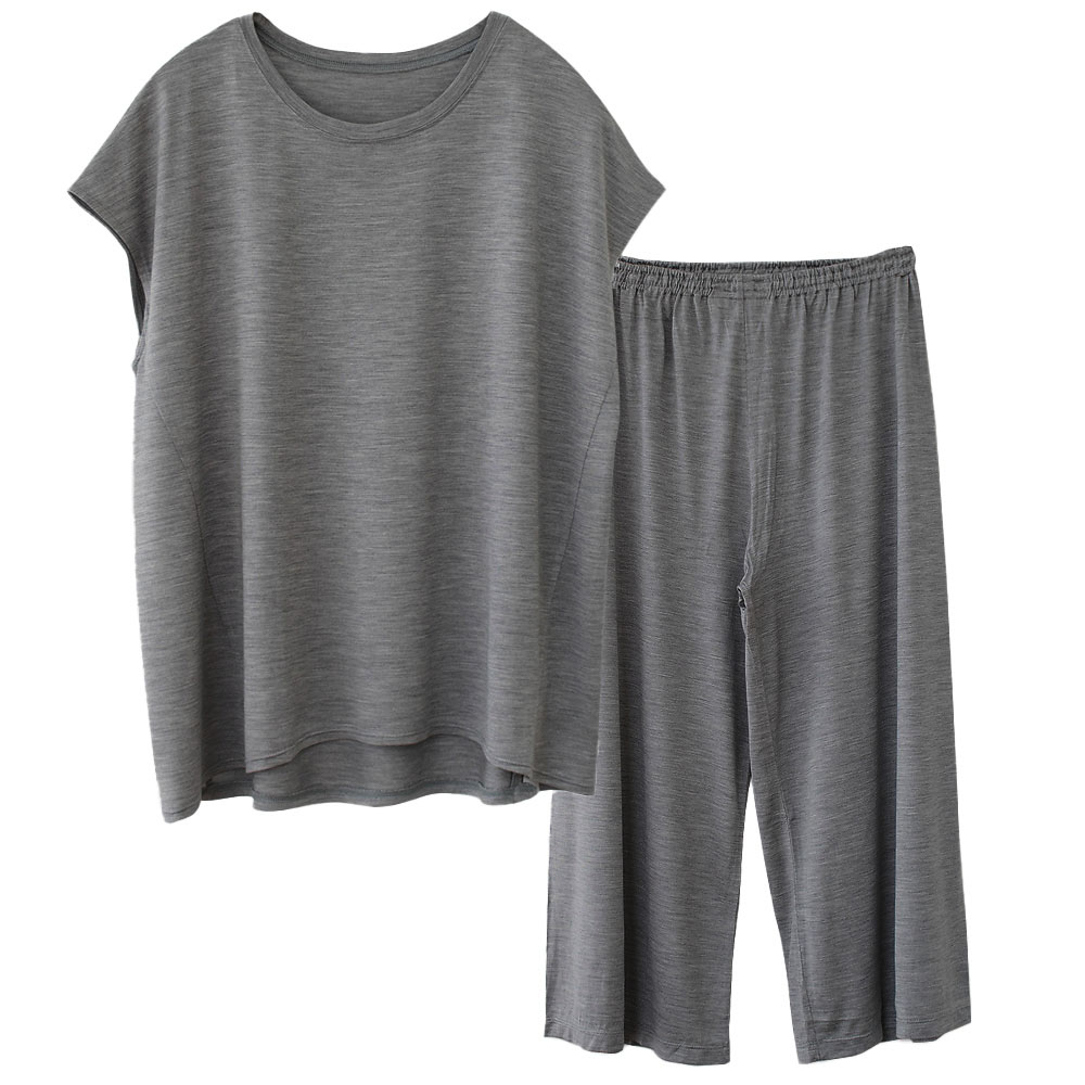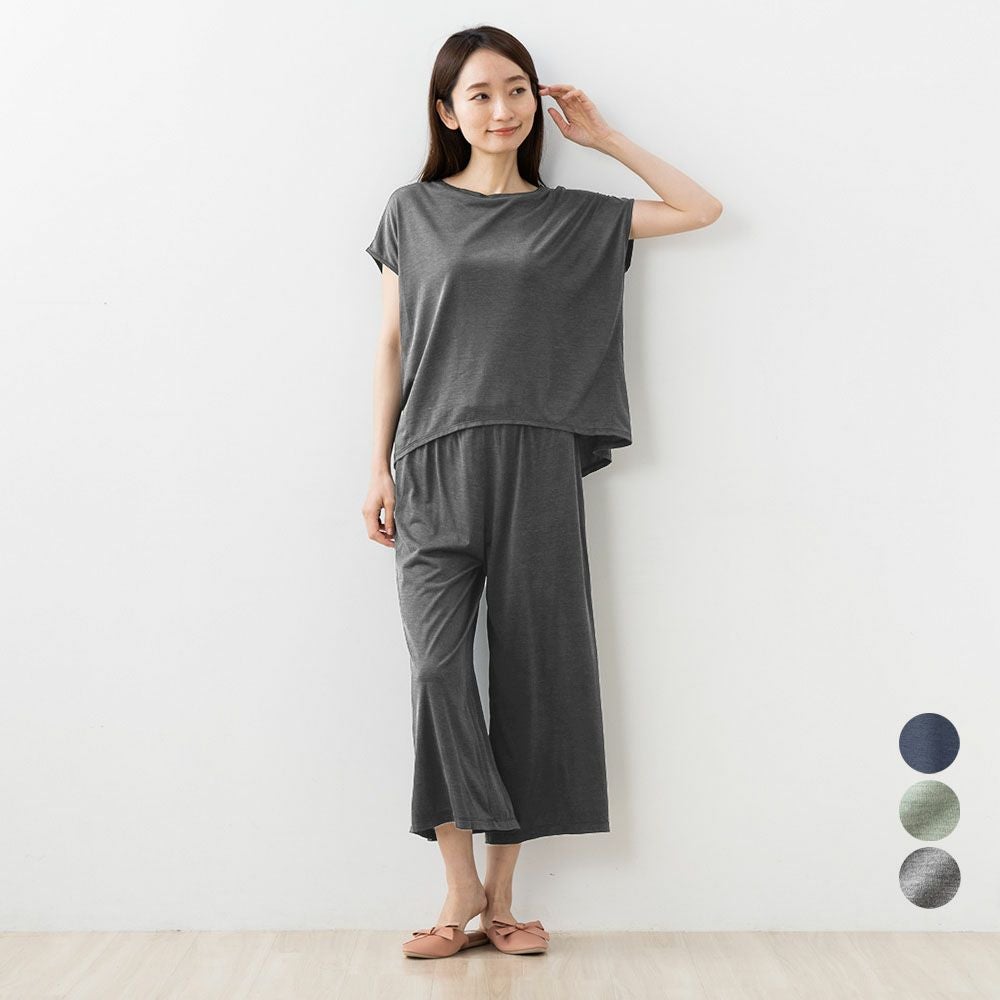 シルク100% ソフトジャージー パジャマ 上下セット フレンチ袖トップスとガウチョパンツ 日本製