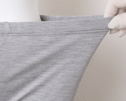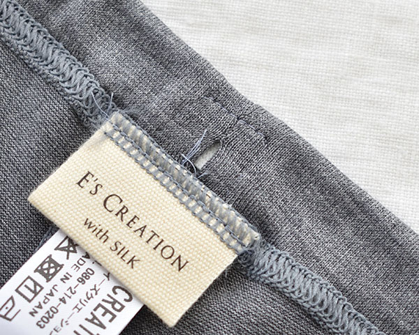 シルクにポリウレタンを少し入れることで伸び率を高めたシルクベア天竺素材。 ソフトな生地で弾力があり、体の動きに合わせて心地よくフィットしてくれます。 薄手ですが透け感が少なく安心の着用感。表にも響きにくいです。