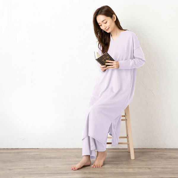 透け感を気にせず着られる楽ちんルームウェア。リラックス度は満点なのにだらしなく見えないのは、高級感あるきめ細やかな生地感とこだわりのディテールだからこそ。 これなら、急な楽客やちょっとしたお出かけも大丈夫。 |