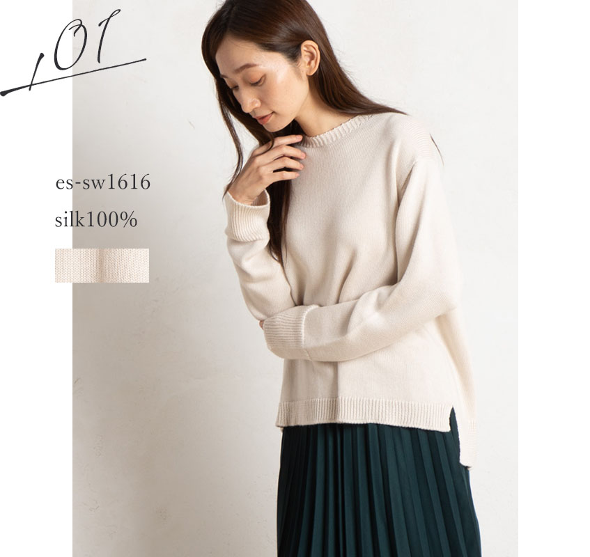 | ニットとは思えないようなすべやかな肌触りに癒やされる一枚。さらりと一枚でもサマになるニュアンスデザインで、どんなボトムとも相性◎。ホールガーメント編み機で編成された縫い目のないニットウェアで、素肌にもやさしく馴染み、ルームウェアとしても愛用して頂けます。 |