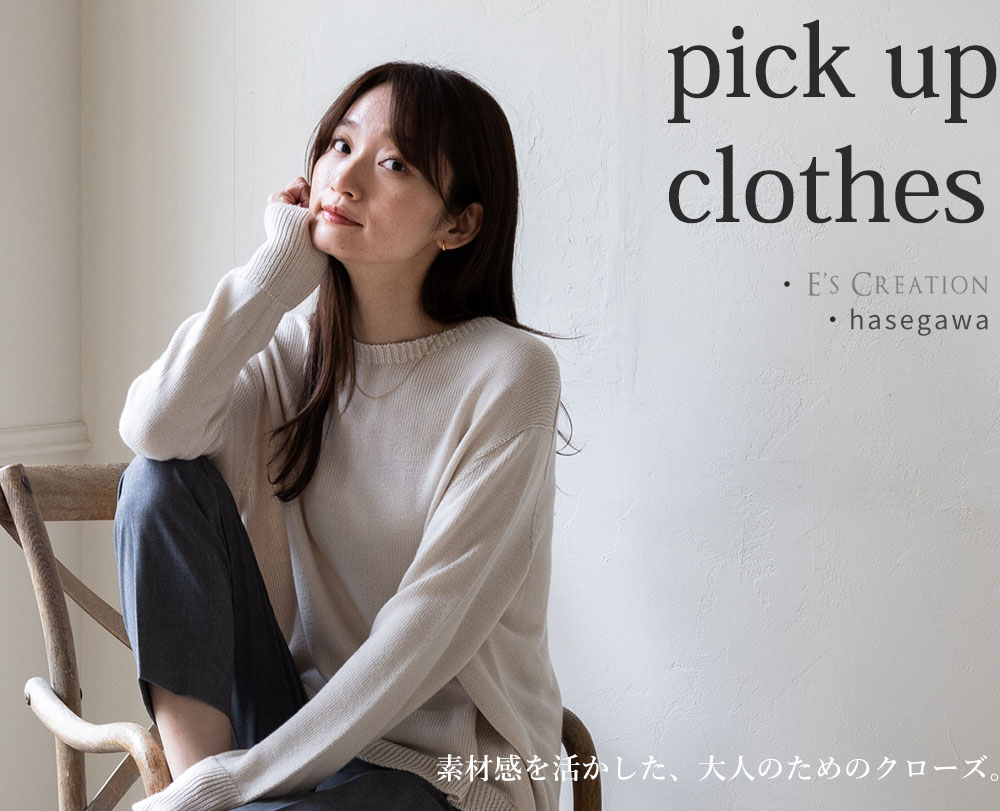 大人のゆらぎ肌にもやさしく寄り添ってくれる、シルクやコットンの天然素材を中心としたお洋服たち。