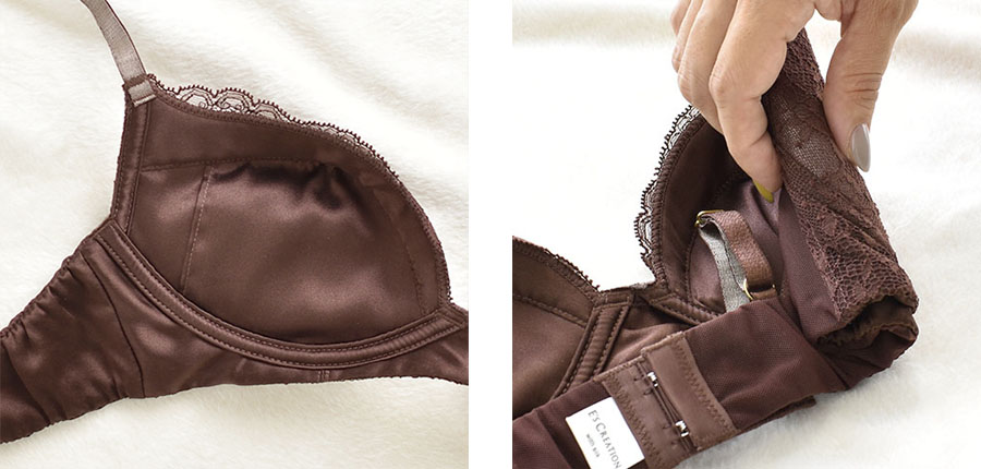 立体的なカップでしっかり谷間メイク。カップ裏は極力シルクがお肌に触れるように しています。 |