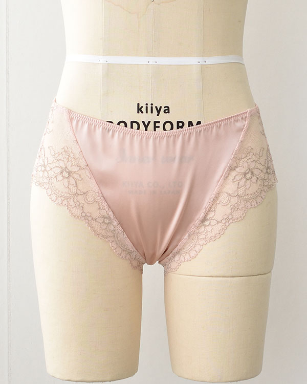 薄手でふんわりと柔らかく、お肌に馴染みやすいシルク100%生地にレースを施したデザイン。es-1098